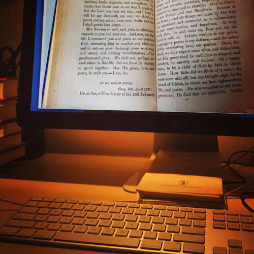 Speaking of writing, a number of friends online have asked if I would share my writing process for the Newton book — the ins and outs of what a typical week looked like for me (as a weekend writer with a family). I have also been asked to explain my formal process for how I envisioned writing what I have called “pastoral synthesis,” the art of taking Newton’s 1,000 letters and drawing them together under an umbrella of selected universals of the Christian life. I’m under deadline to finish three article projects in the next week, but when I get those done I hope to return to those journal pages, transcribe my notes, and share my process here at tonyreinke.com.